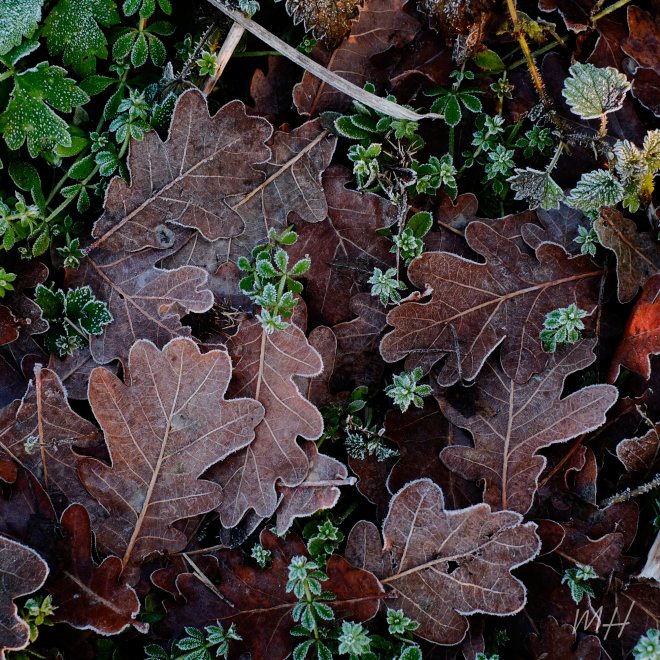 I came across this image in my collection recently and now can’t stop studying it. Now dissociated from any thoughts I had at the time of taking, I see the picture for its content, its composition, its colour. The richness of the browns and greens, the details of the frost picking out each vein of the leaves, the balance of the composition, emits an over-riding sense of stillness, quietness and calm. Looking at this image makes me feel grounded. It shows the natural order of things, speaks of real life, of time, taking time, appreciation, wonder, and waiting, without hurry. This lack of a sense of urgency is cathartic in these fast-paced times. Giving a sense that beneath the overwhelm, real life, the important stuff, the processes of time immemorial, continue assuredly, at their own pace, the natural pace, in the natural order of things, and we can reconnect to these by simply taking the time to stop and observe.